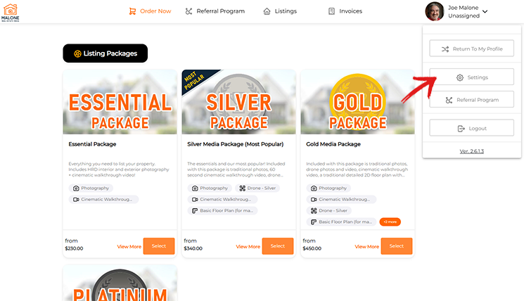 At the top of the page expand the menu under your profile picture and click “Settings".